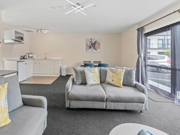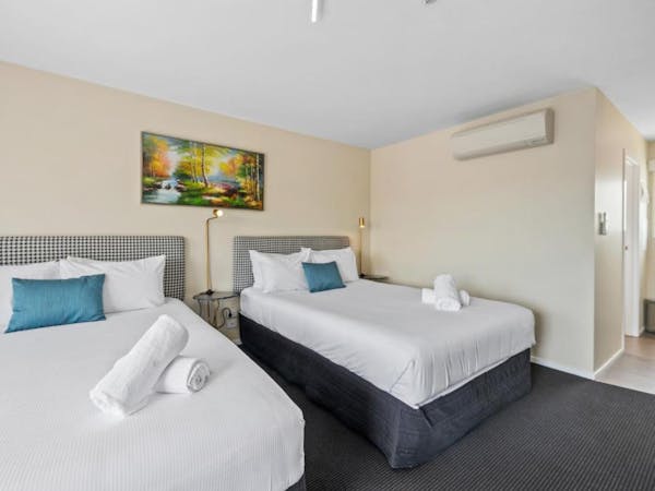 The family room provides the warmth, cleanliness and extra space your family needs for a perfect holiday experience. The room features a comfy queen size bed and two single beds, and a double roll out sofa bed. The fun, relaxed atmosphere of the Family Room makes it the perfect getaway for the entire family.